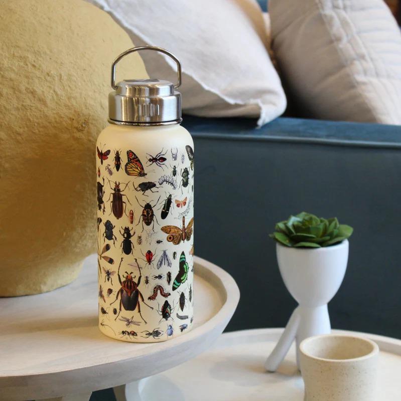 Whether you'll be spending your day hunting for exotic butterflies or cataloging endless specimens of dung beetles, this insect bottle has got you covered. Fill it with a full 32 ounces of cool water, a fancy chai, (or hey, something stronger, we're not judging) and your drink will be waiting for you at just the right temperature whenever you're ready. With a textured design for a unique tactile experience, this flask will keep your drink hot or cold until you're ready to enjoy it. Hand-wash Only BPA-free Here's how it works: the space between the inner and outer flask wall is evacuated, creating a vacuum (well, a partial vacuum anyway...). In order for heat transfer to take place from the outside world into your cold drink, or from your hot drink to the outside world, it needs nearby molecules to excite. If there aren't many molecules nearby, as is the case in a vacuum, the heat's energy can't easily be passed along, so your drink stays close to the temperature it was when you put it into the flask for a really long time. Simply stated, vacuums make great thermal insulation!