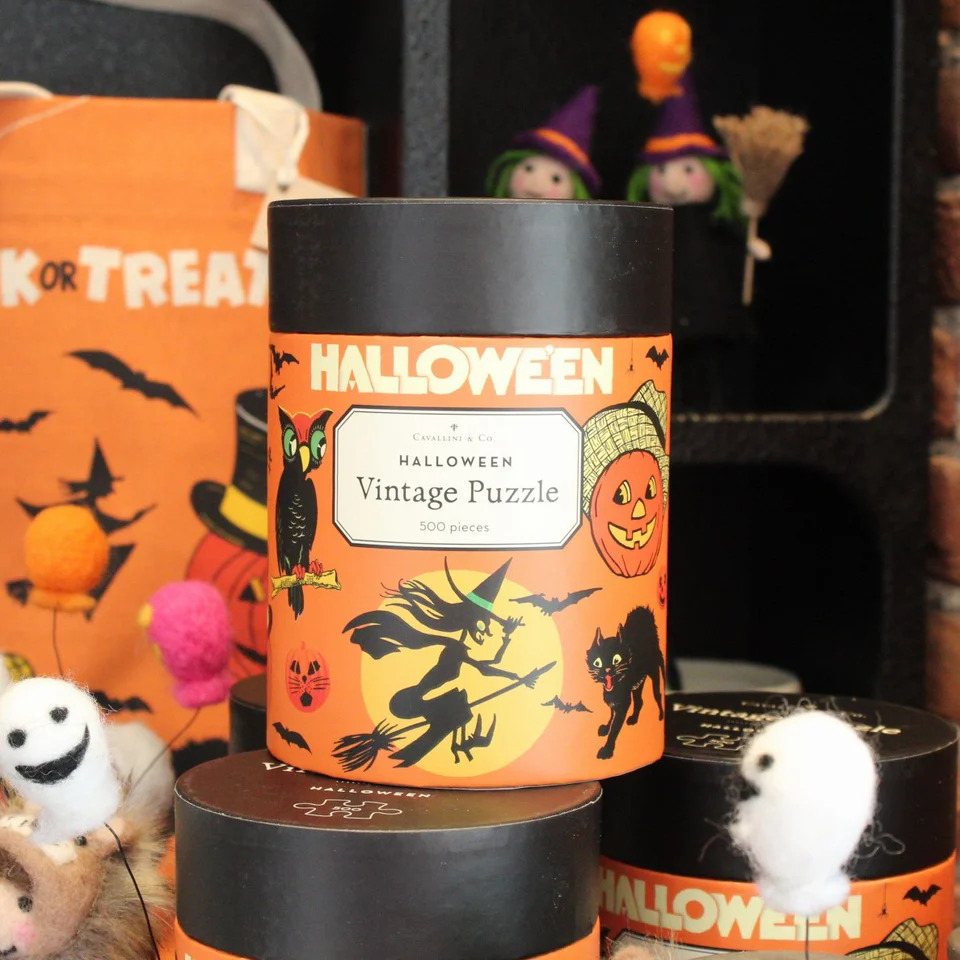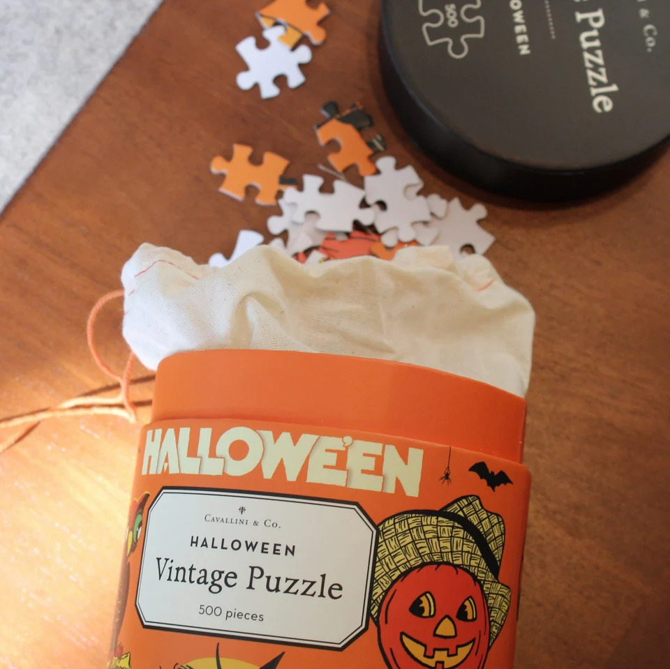 Say hello to your new favorite puzzle! This 500 piece puzzles come packaged in a 6.5" puzzle tube and a handy muslin bag to keep all the pieces together. Plastic-free packaging is just another reason you’ll love these charming puzzles. Beautiful packaging and cheerful designs make these the perfect gift for a spooky special someone, or yourself! Finished puzzle measures 14 by 22 inches.