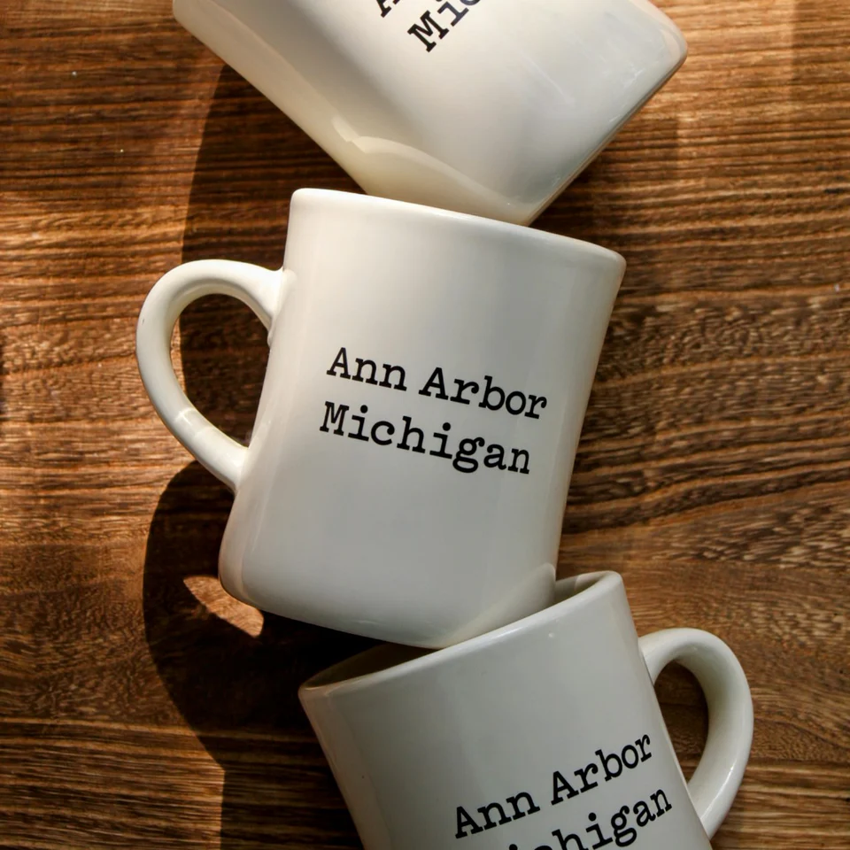 Start your day with a slice of nostalgia with our exclusive white ceramic diner-style mug. Whether you're sipping your morning coffee, or winding down with a cozy tea, this mug is the perfect companion. It's a little bit of Ann Arbor, right in your hands. Make a statement, share a story, and support your favorite local spot with every cup. Bring a piece of Ann Arbor, Michigan into your home! 11 oz mug, 4" high Dishwasher and microwave safe High Quality Ceramic Design is printed on both sides