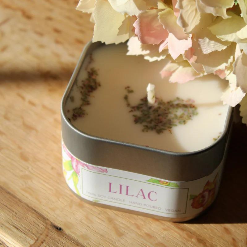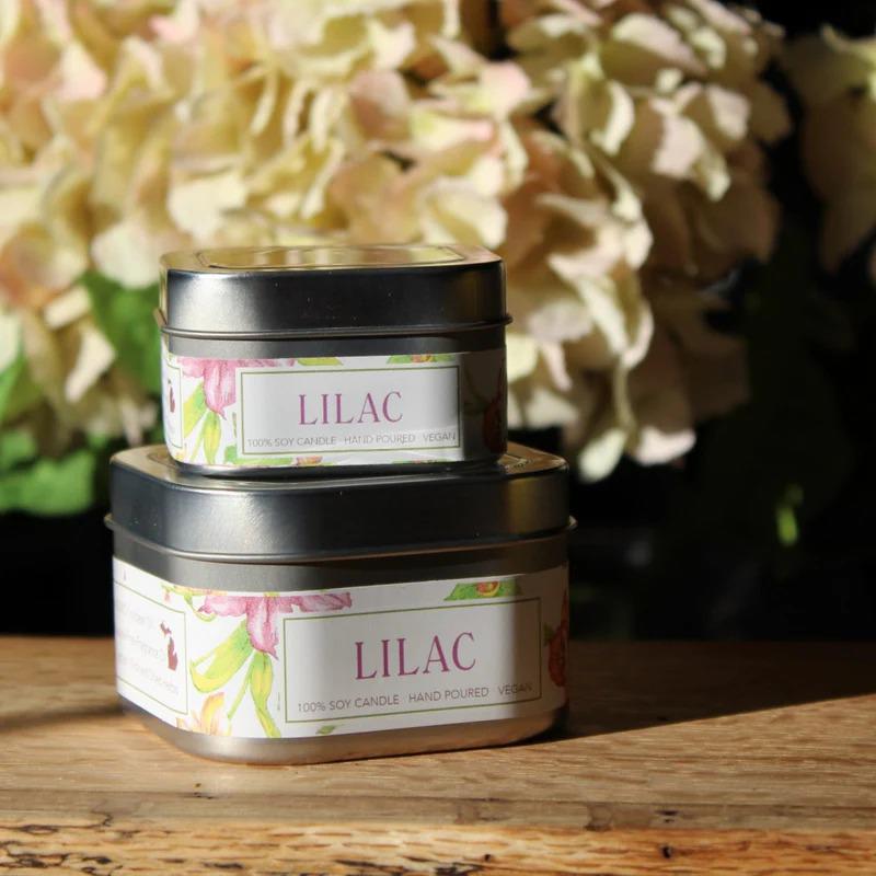 This super scent brings Spring to our minds. It is dead-on to the fragrance of a lilac bush in full bloom on a warm day. It truly is a must if you are looking for a strong sweet fresh floral scent. Dried purple heather added to the wax for a little color. Made in Ferndale, Michigan with 100% American non-GMO soy wax, all cotton wick, essential and/or fine fragrance oils, and dried herbs. 4 oz - 20 hour burn time 8 oz - 40 hour burn time