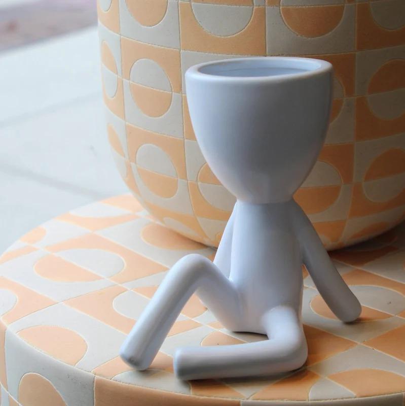 Add an adorable and sophisticated Sitting Human to your home decor. These ceramic figurines are the perfect accessory to accent any corner, entryway, or table in your living room, bedroom, and office. Crafted with the utmost attention to detail, these figurines are made from high-quality ceramic, ensuring their durability and longevity. Each figurine is meticulously designed to complement your existing furniture, adding a touch of elegance and style to any space. Whether you place them on a shelf, mantel, or side table, they are sure to be a great centerpiece in your home. Not food safe - The small vessel is perfect for an air plant or faux succulent!
