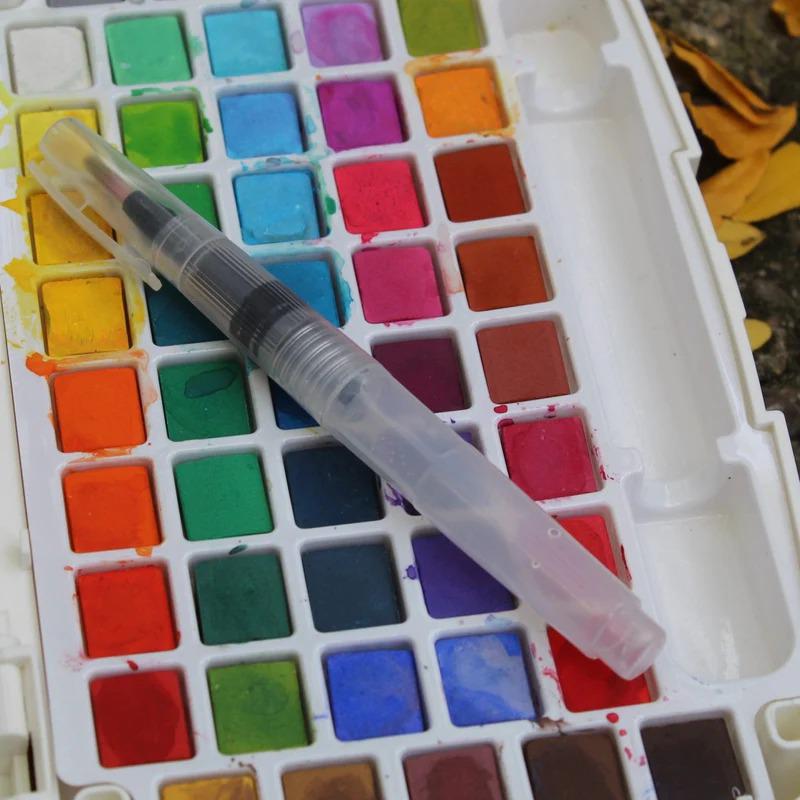 Portable Artist's Watercolor Field Kit lets you paint anywhere inspiration strikes! Discover a world of creativity in one compact Field Kit! Comes with 48 half-pans of transparent artist-grade watercolor paints in a versatile range of colors. Transport water in the refillable aqua brush with reservoir in its handle. Included mixing palette is divided to keep colors separate. Sturdy travel case offers additional mixing space in its lid. All-in-one Field Kit fits easily in large pockets and small bags. Perfect for plein air painting and travel. For hobbyists and professionals. Watercolor Field Kit measures 7.25'' wide x 4.75'' high x 1'' deep.