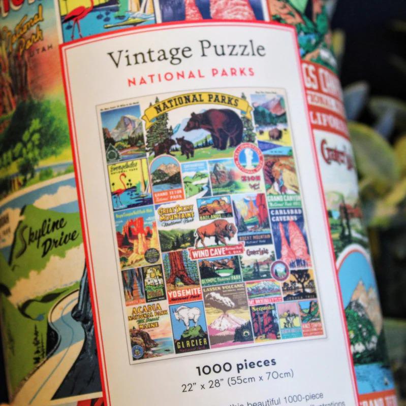 Featuring illustrations of iconic national parks like the Grand Canyon and Yosemite, this premium quality puzzle has a vintage print finish that highlights the timeless appeal of the great outdoors. Say hello to your new favorite puzzle! This puzzle come packaged in a 10" puzzle tube and a handy muslin bag to keep all the pieces together. Plastic-free packaging is just another reason you’ll love this challenging 1,000 piece puzzles. Beautiful packaging and cheerful designs make these the perfect gift — for a friend or yourself!