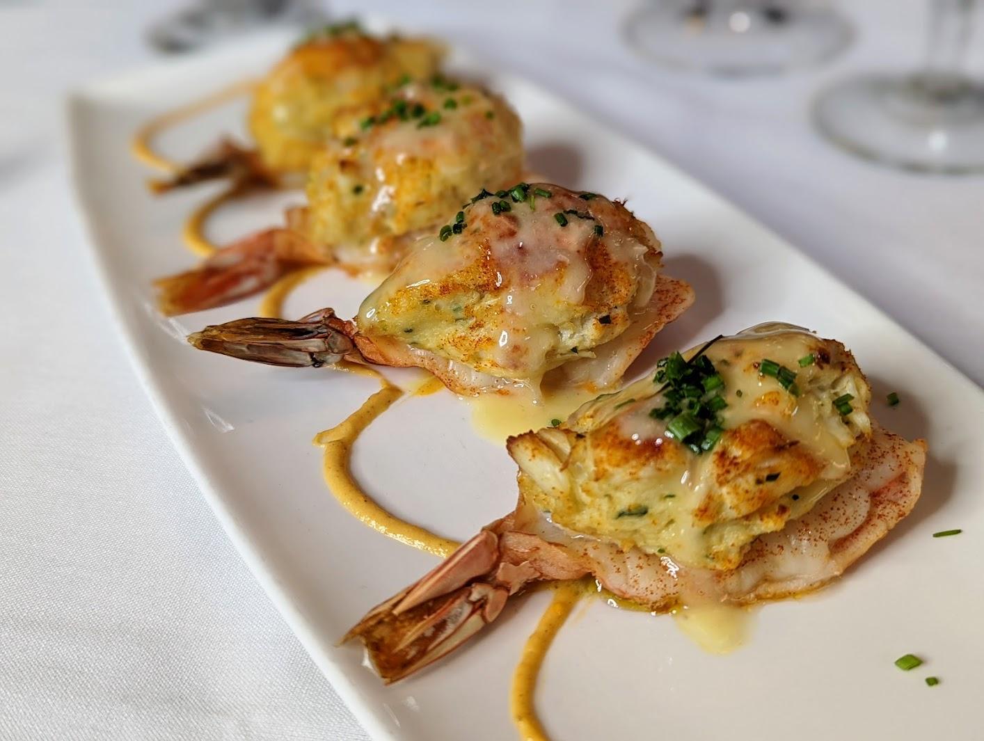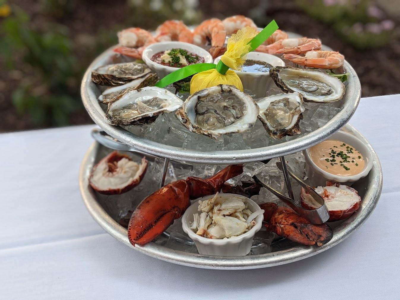 lobster claws, lobster tail, jumbo shrimp, oysters, and lump blue crab