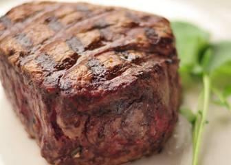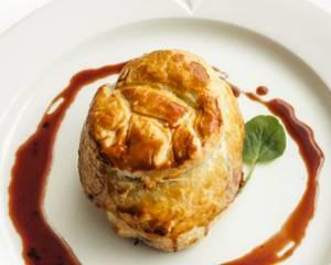 mushroom duxelle, goose liver pate, served medium rare