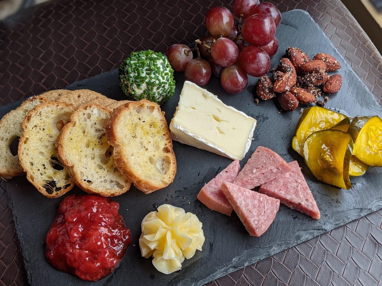 seasoned crostini, crackers, and whipped honey butter with chef's selection of meat and cheeses served with house made jam, sweet pickles, spicy almonds, and fruit