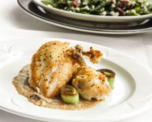 with roasted leeks, mushrooms and buerre-blanc